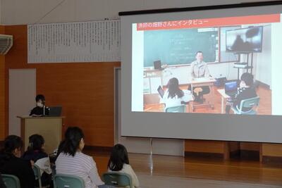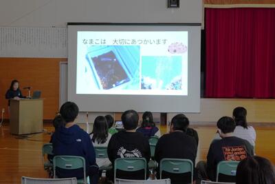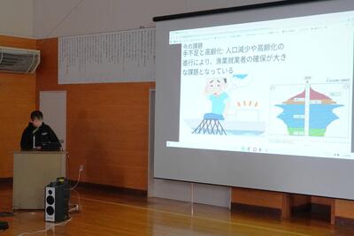今日は、地元の漁師さんをお招きして、ふるさと学習を行いました。タコ漁のことや栽培・養殖漁業について質問をしました。温暖化の影響などで、タコの採れる量や時季に変化が出ていることや、漁業権や養殖している種類など教えていただきました。子どもたちは再質問をするなど積極的に学習していました。