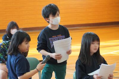 5月2日に児童会活動の年間計画を確定するための、児童総会が行われました。参加した児童からは、学校生活を良くするためにたくさんの意見が出され、活発な意見交換ができました。児童会長からは、「みんなで意見を出し合い、より良い学校にしましょう」とのお話がありました。