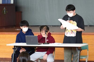 今日の宗谷小タイムの時間に児童総会が行われ、今年度の活動の反省が行われました。書記局及び各委員会の反省に対して、参加した児童からたくさんの質問や意見が出されました。出された意見は来年度の児童会に引き継がれ、活動に反映されます。みんなが楽しく安心に過ごせる宗谷小学校にしていきましょう。