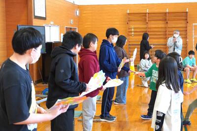 今日の宗谷小タイムの時間に6年生を送る会が実施されました。実行委員会のみなさんが企画した「宗谷小クイズ」を保護者の皆さまと一緒に楽しみました。クイズの後、1・2年生が卒業生にプレゼントを渡し、卒業生からは「クイズをみんなが楽しんでいて良かった」「プレゼントありがとう」とお礼の言葉がありました。クイズに参加して盛り上げていただいた保護者の皆さまありがとうございました。