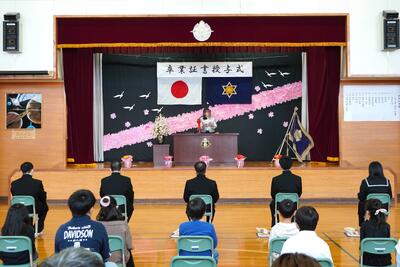 本日、第127回宗谷小学校卒業証書授与式が挙行されました。多くのご来賓の皆様にご参列いただき、在校生、教職員、そして保護者の皆様に見守られ、5名の卒業生が校長先生から卒業証書を授与され、宗谷小学校を巣立っていきました。在校生も卒業をお祝いしようという気持ちが伝わる立派な態度で式に臨んでいました。卒業される皆さんの、今後の活躍を心から願っています。卒業おめでとう!!