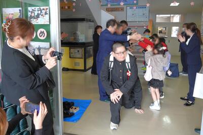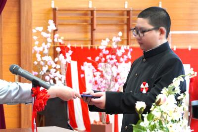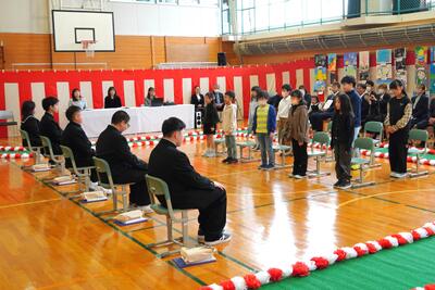 令和7年度宗谷小学校入学式が挙行され、かわいい新1年生が入学しました。式の中では、児童会長からの歓迎の言葉の後に、在校生全員で「学校坂道」を歌いました。笑顔が素敵な新1年生、返事や式に参加する態度がとても立派でした。